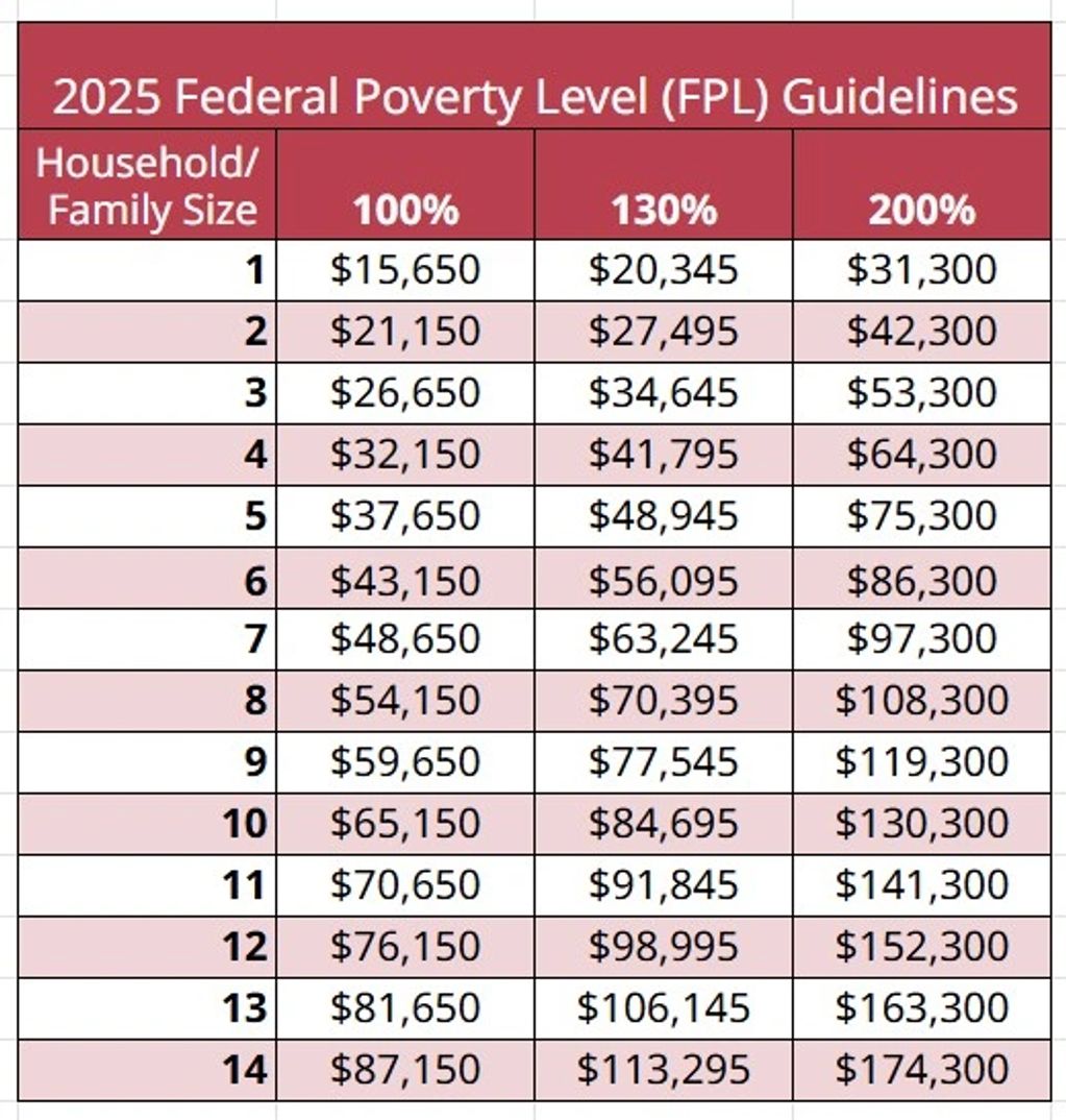 3) Household must have an income lower than or equal to the income chart (above) for their household size